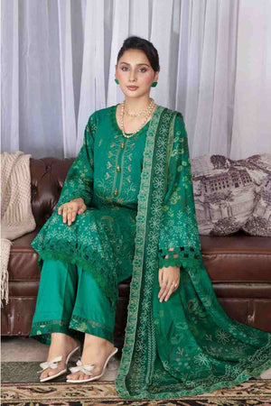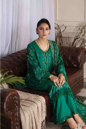 Dupatta: Digital Diamond Luxury Print Fancy Embroidered Border Dupatta in a matching green with an intricate floral print.