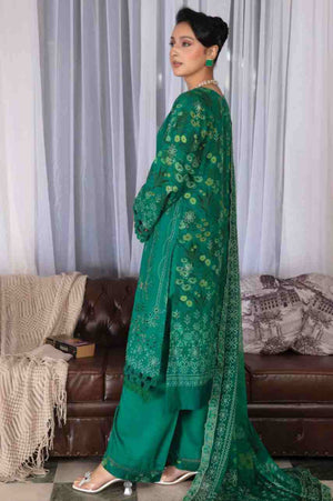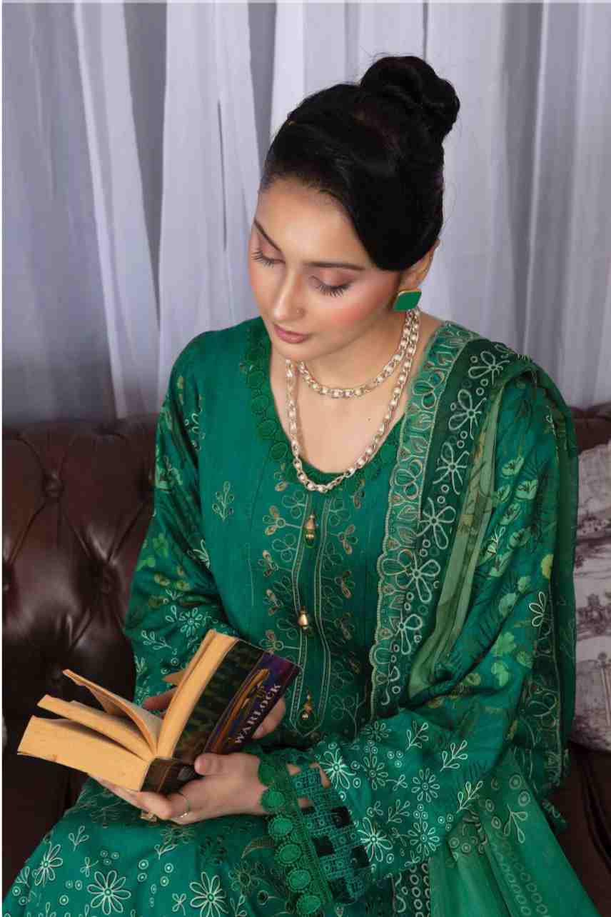 Shirt: Emerald green Super Comfort Digital Luxury Bana Dora Linen with light green floral digital embroidery and cutwork on the front, boring daman, embroidered back, and sleeves.