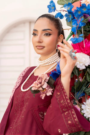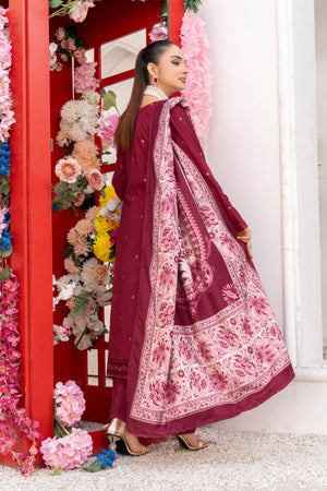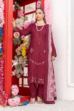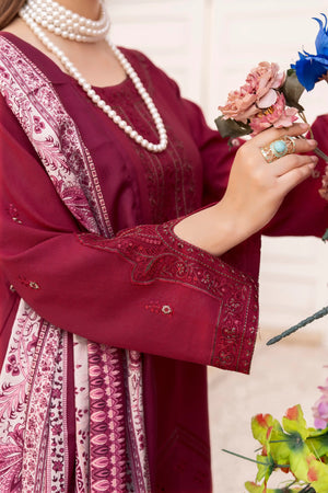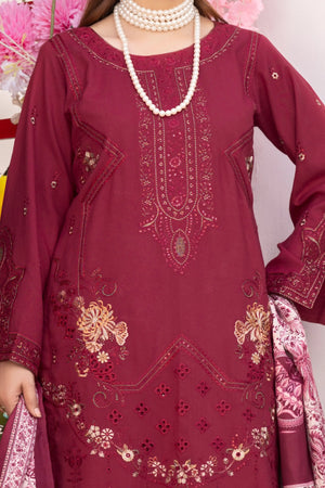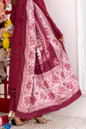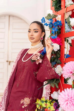 Deep Maroon – Premium Dhanak Unstitched 3-Piece Embroidered Suit