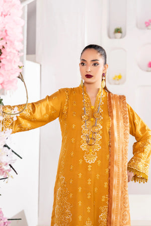 Mustard Gold – Premium Dhanak Unstitched 3-Piece Embroidered Suit