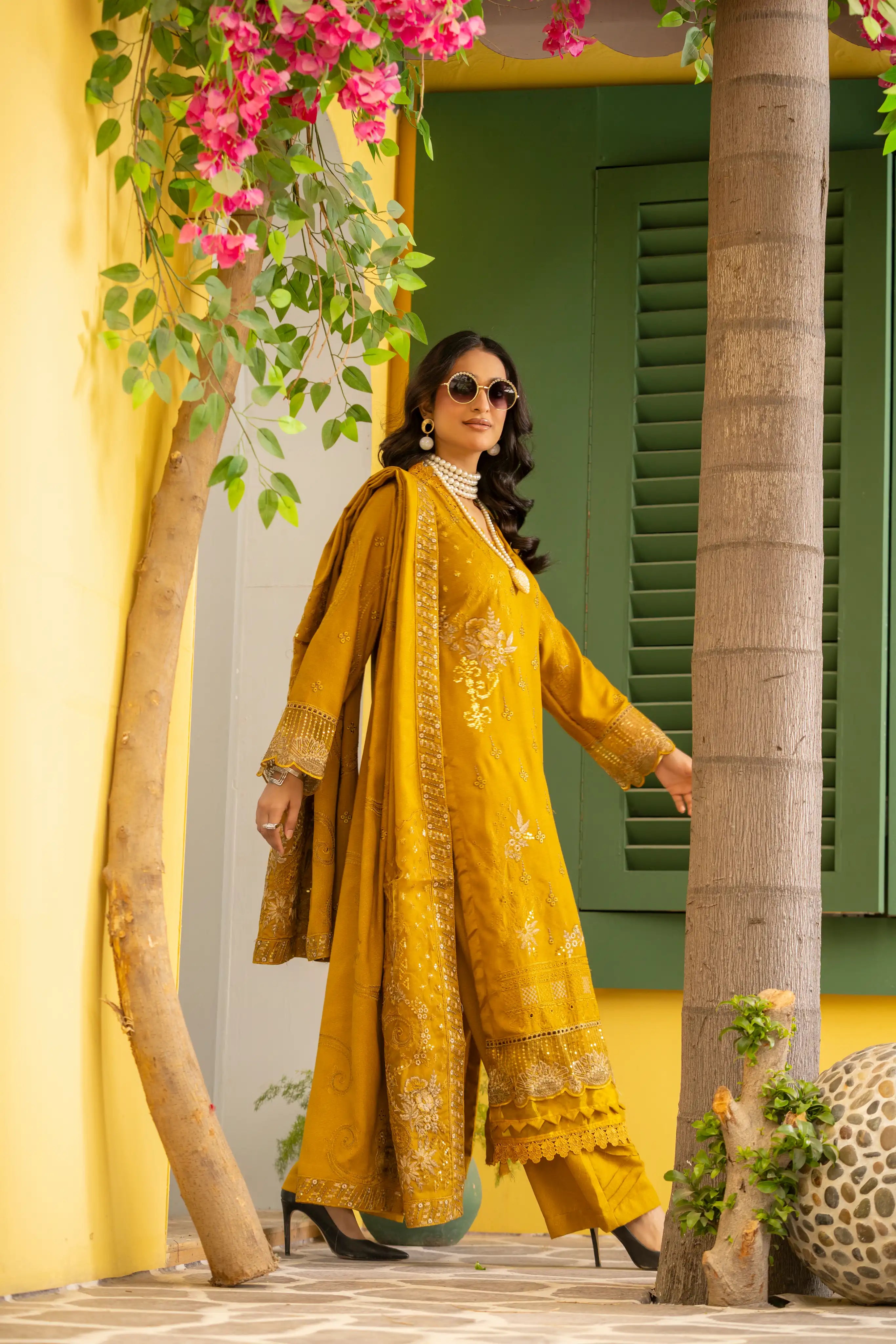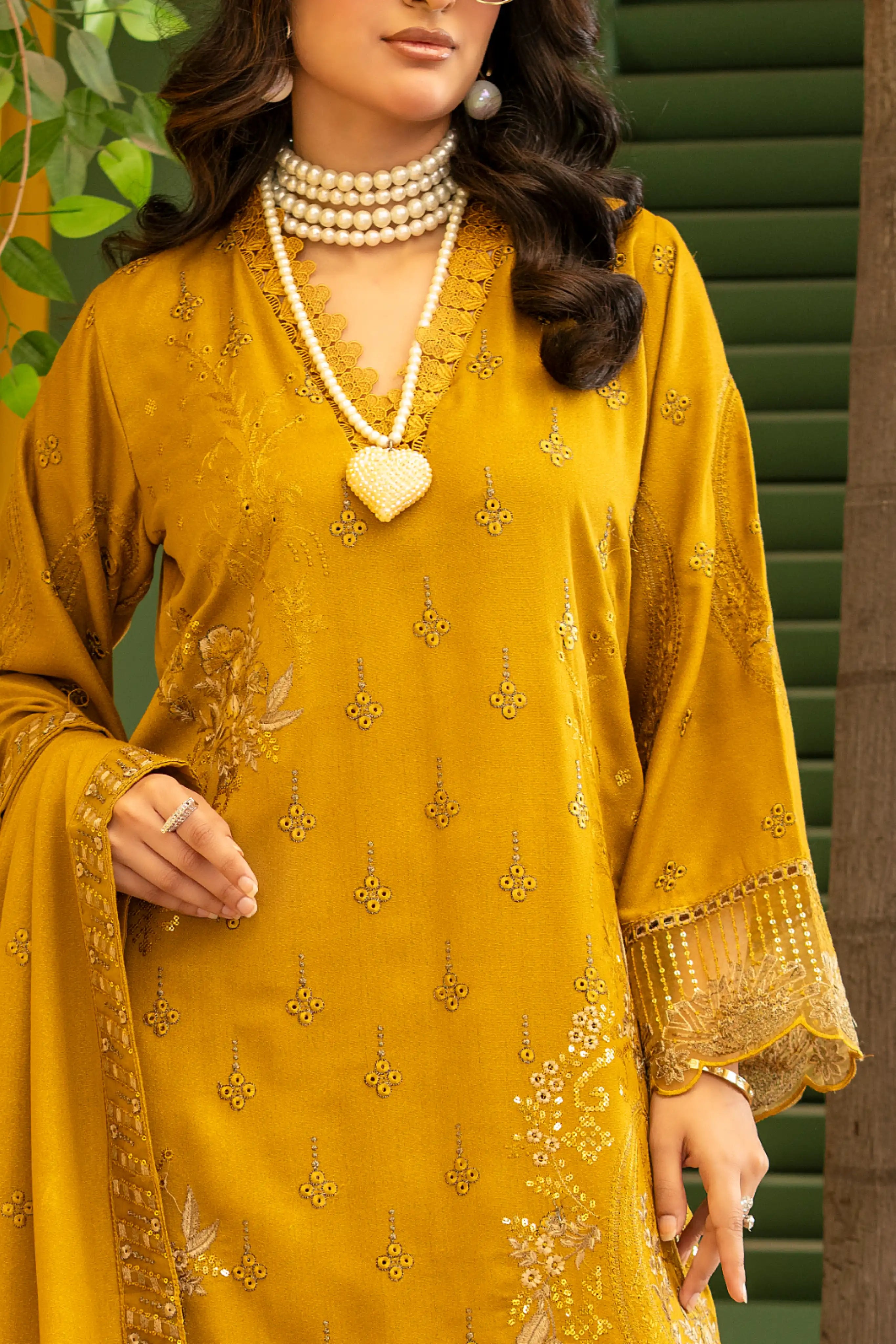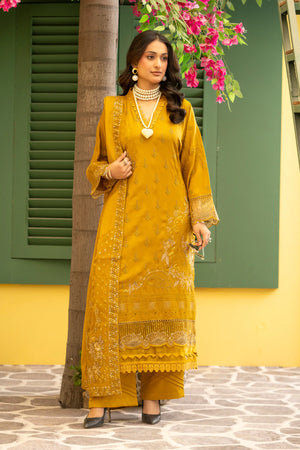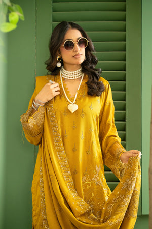 Mustard Yellow – Premium Unstitched 3-Piece Dhanak Karandi Suit