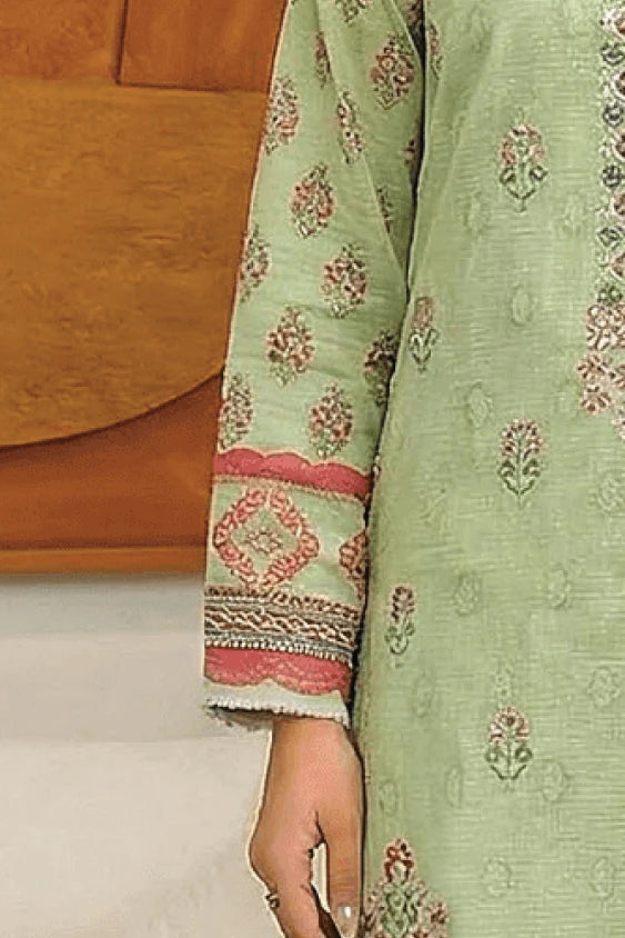Soft Pastel Green – Premium Unstitched 3-Piece Suit Fancy Bana Dora Lawn