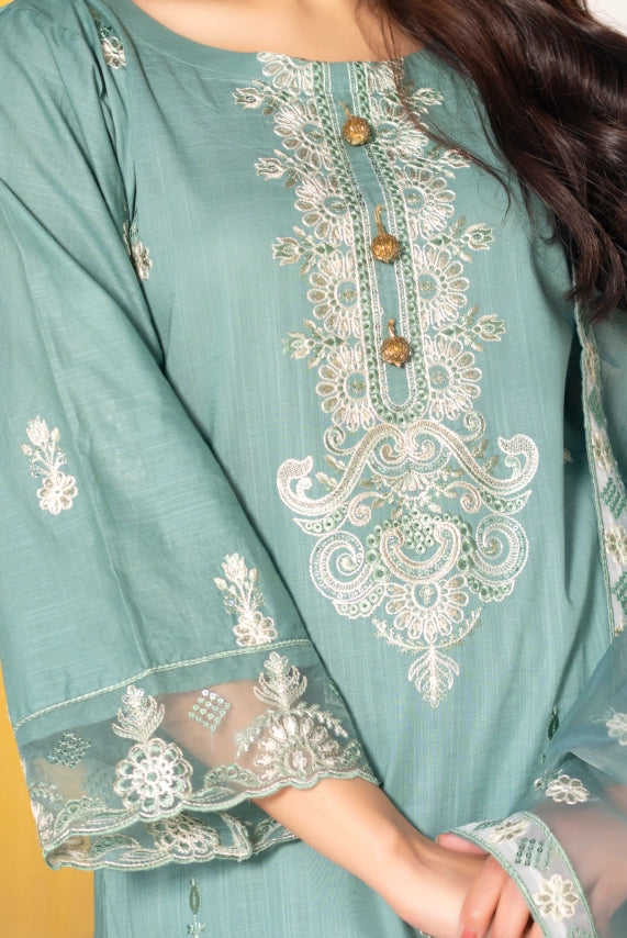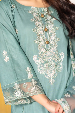 Sea-Green - Premium Embroidered 3-Piece Suit Summer Unstitched Cross Slub Lawn