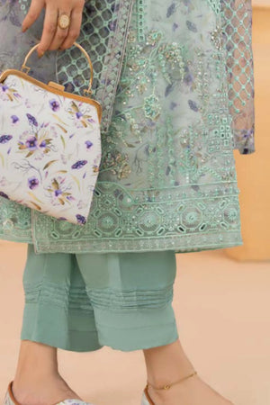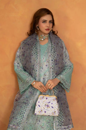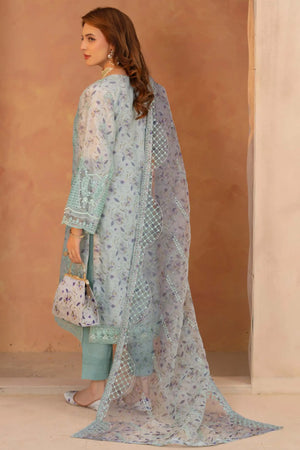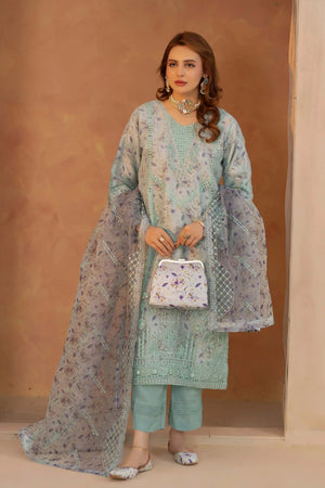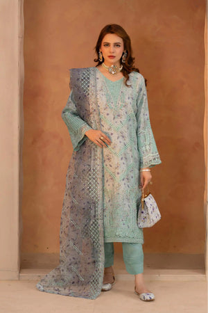 Aqua Blue – Organza Semi Stitched Premium 3-Piece Embroidered Suit with Complimentary Clutches & Khussa