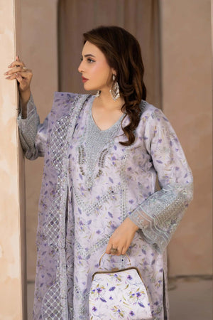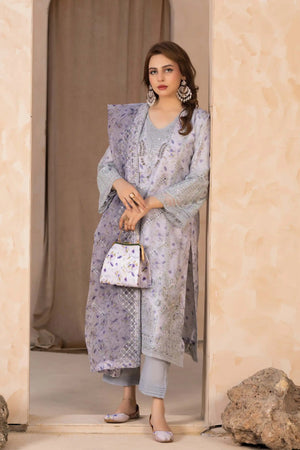 Ice Lilac / Pastel Lavender – Organza Semi Stitched Premium 3-Piece Embroidered Suit with Complimentary Clutches & Khussa