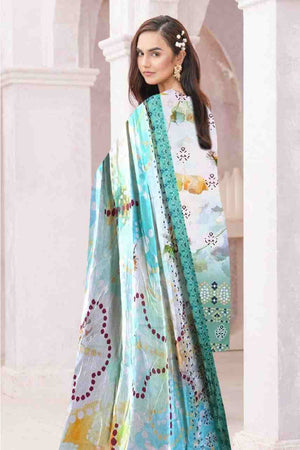 Dupatta: Vibrant Digital Print Dupatta. Showcases a shimmering, light floral pattern finished with a detailed sea green border print.