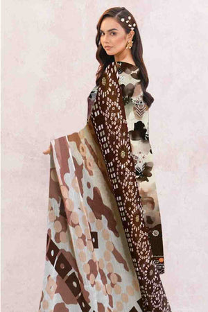 Dupatta: Lightweight Digital Print Dupatta. Showcases a complementary abstract and floral pattern, framed by a broad, decorative geometric border print.