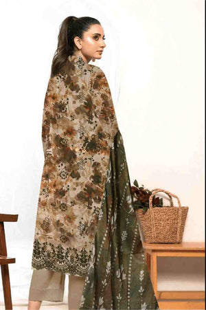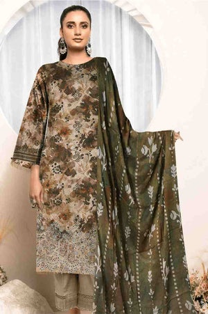 Dupatta: Digital Diamond Luxury Print in Earthy Olive Green with Abstract Floral Patterns and a Sophisticated Border.