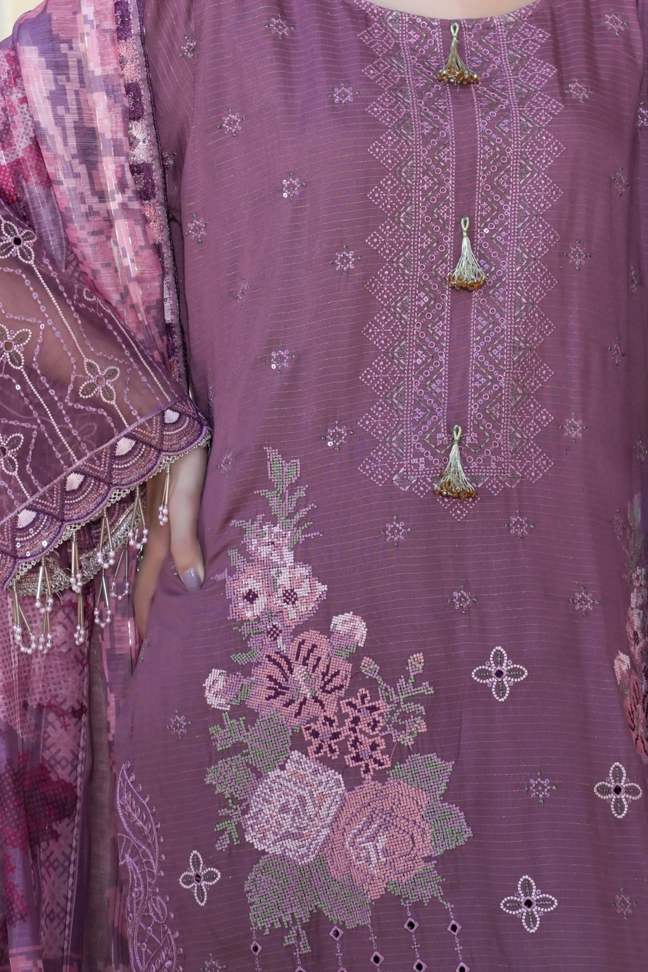 Muted Mauve - Chamki Bana Dora Viscose Unstitched 3-Piece Embroidered Suit