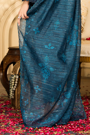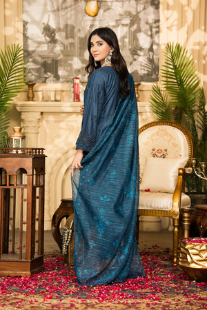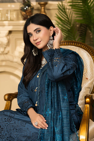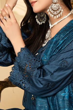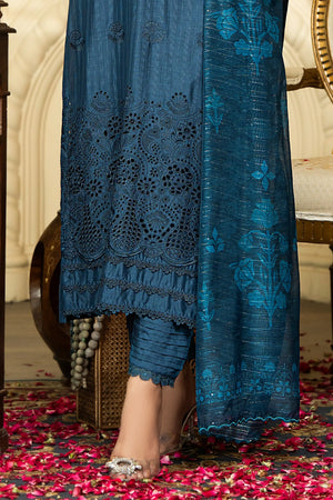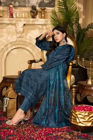 Peacock Blue - Premium Unstitched 3-Piece Bana Dora Viscose Chicken Kari Suit