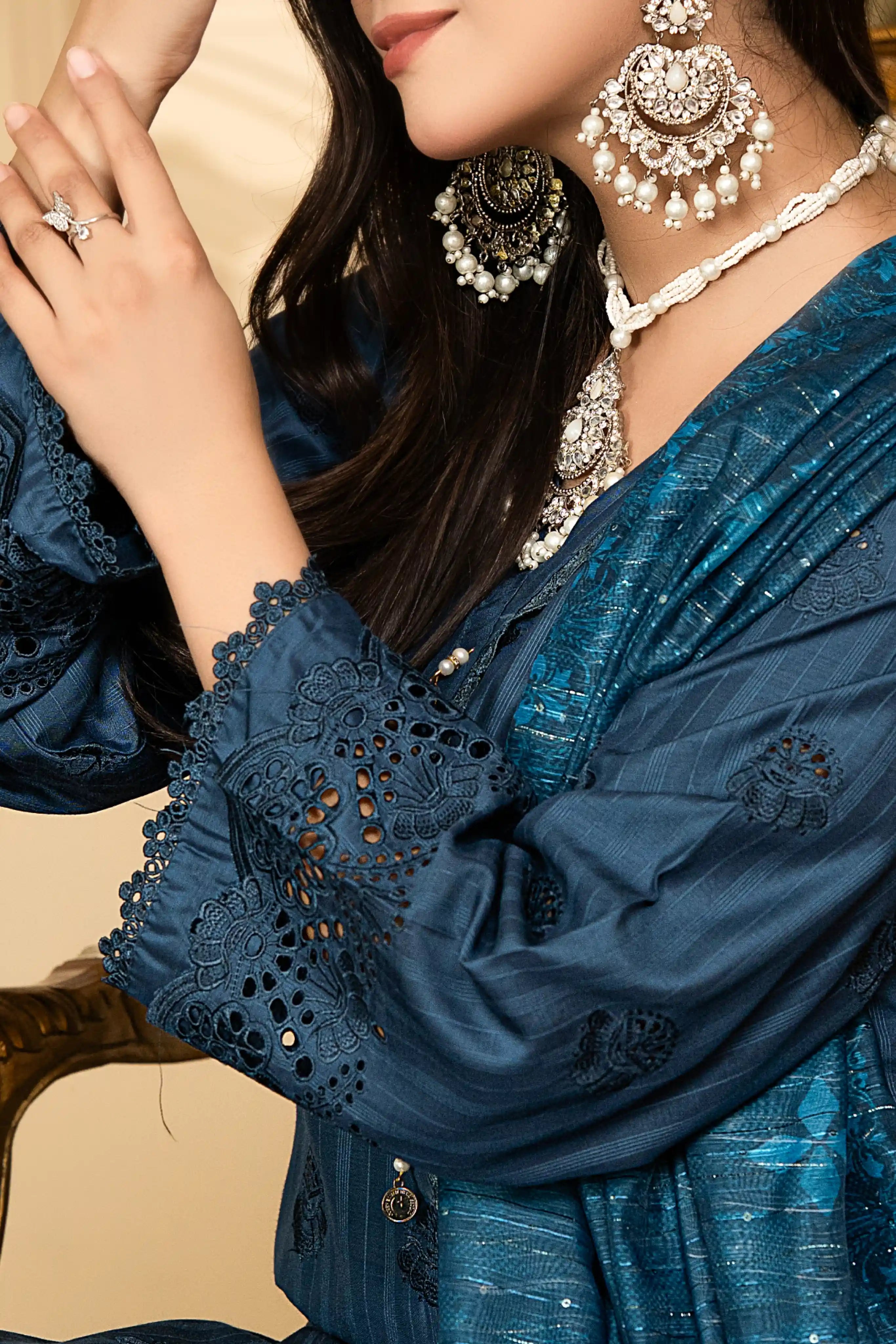 • Detailed embroidered daman design