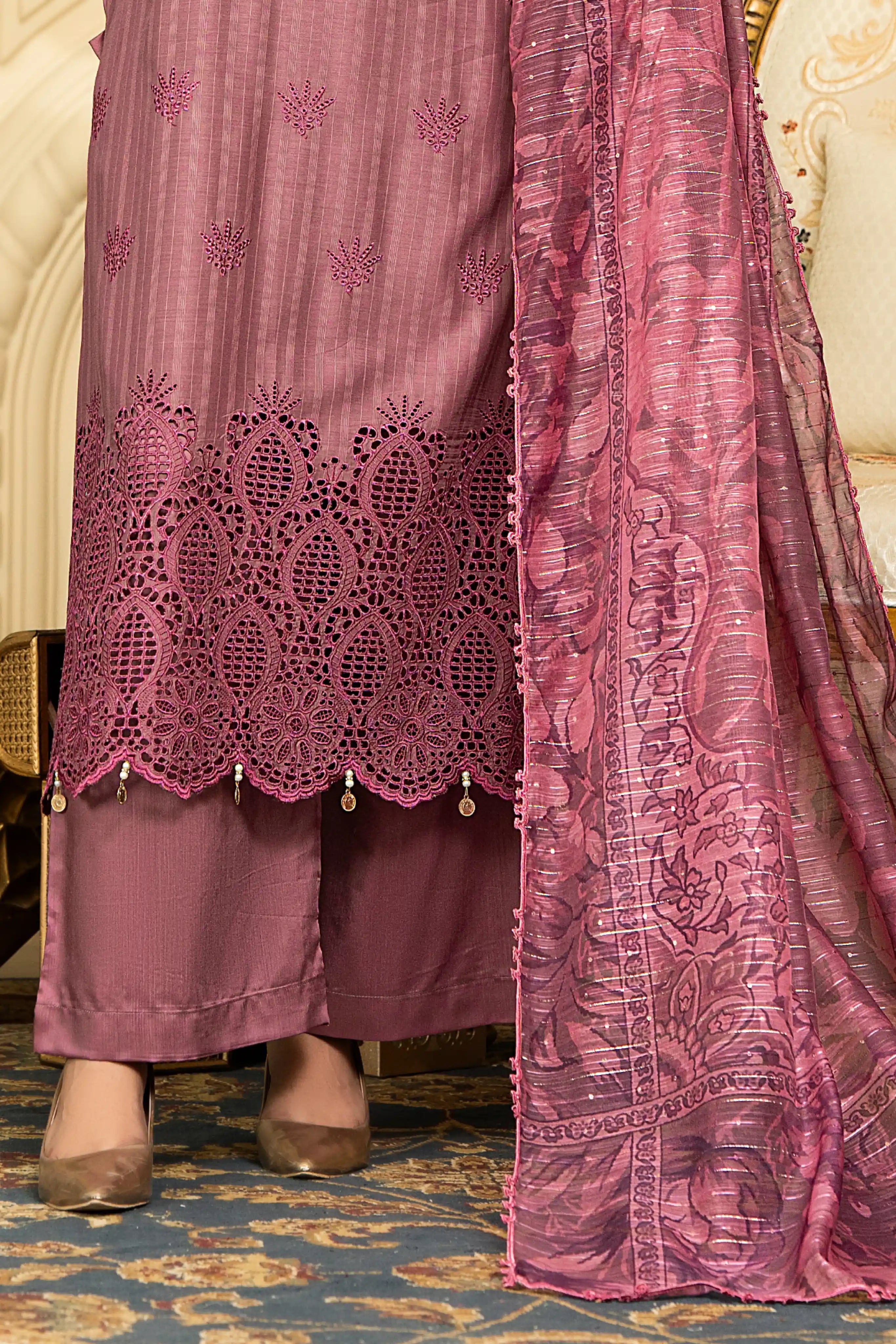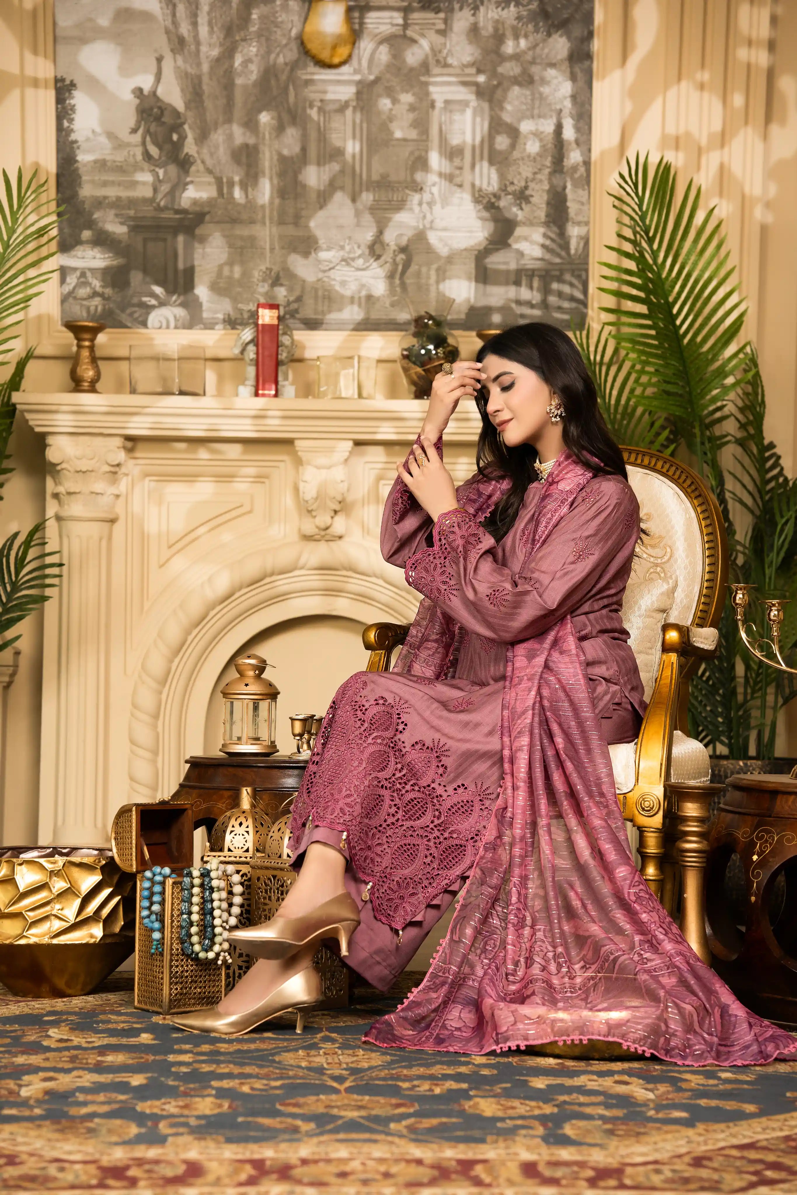 Dusty Rose - Premium Unstitched 3-Piece Bana Dora Viscose Chicken Kari Suit