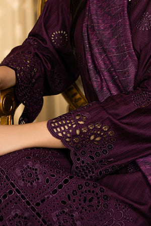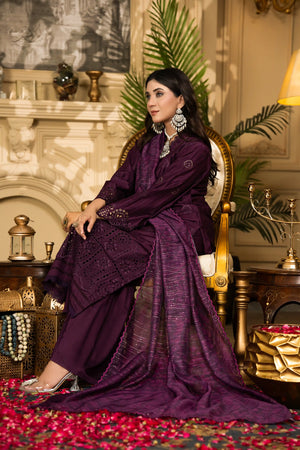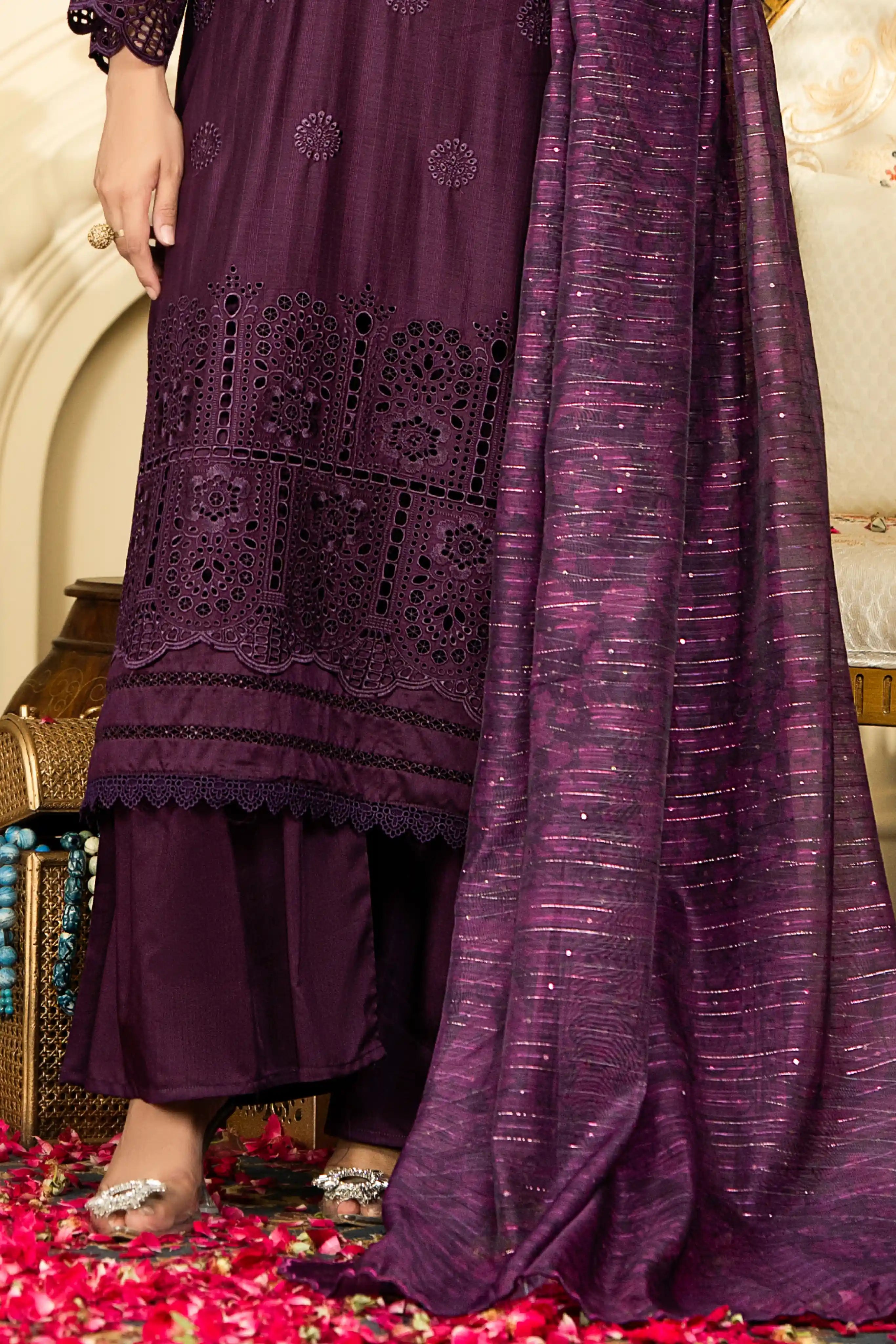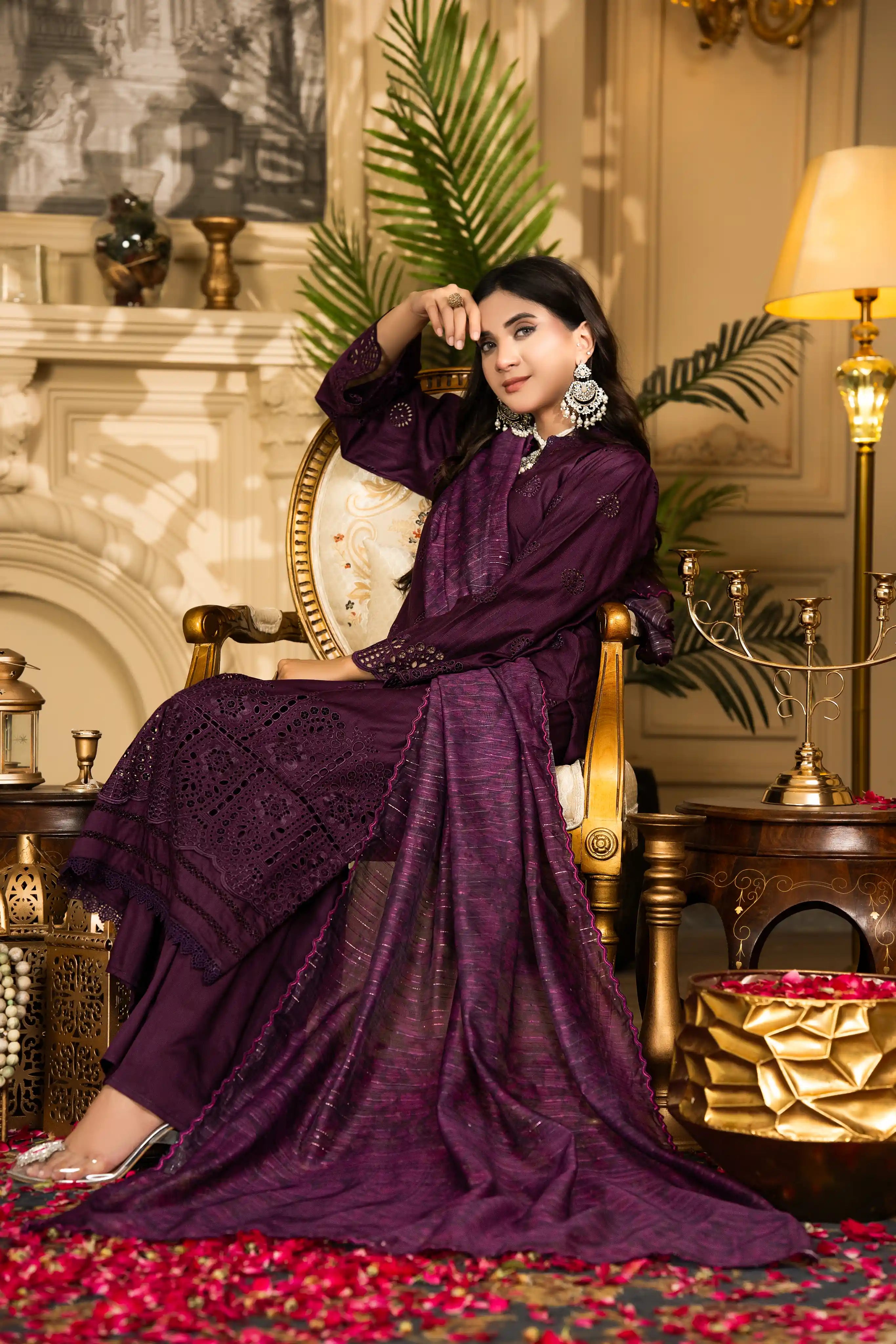 Deep Purple - Premium Unstitched 3-Piece Bana Dora Viscose Chicken Kari Suit