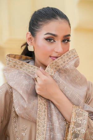 Light Beige- Chamki Bana Dora Viscose Unstitched 3-Piece Embroidered Suit