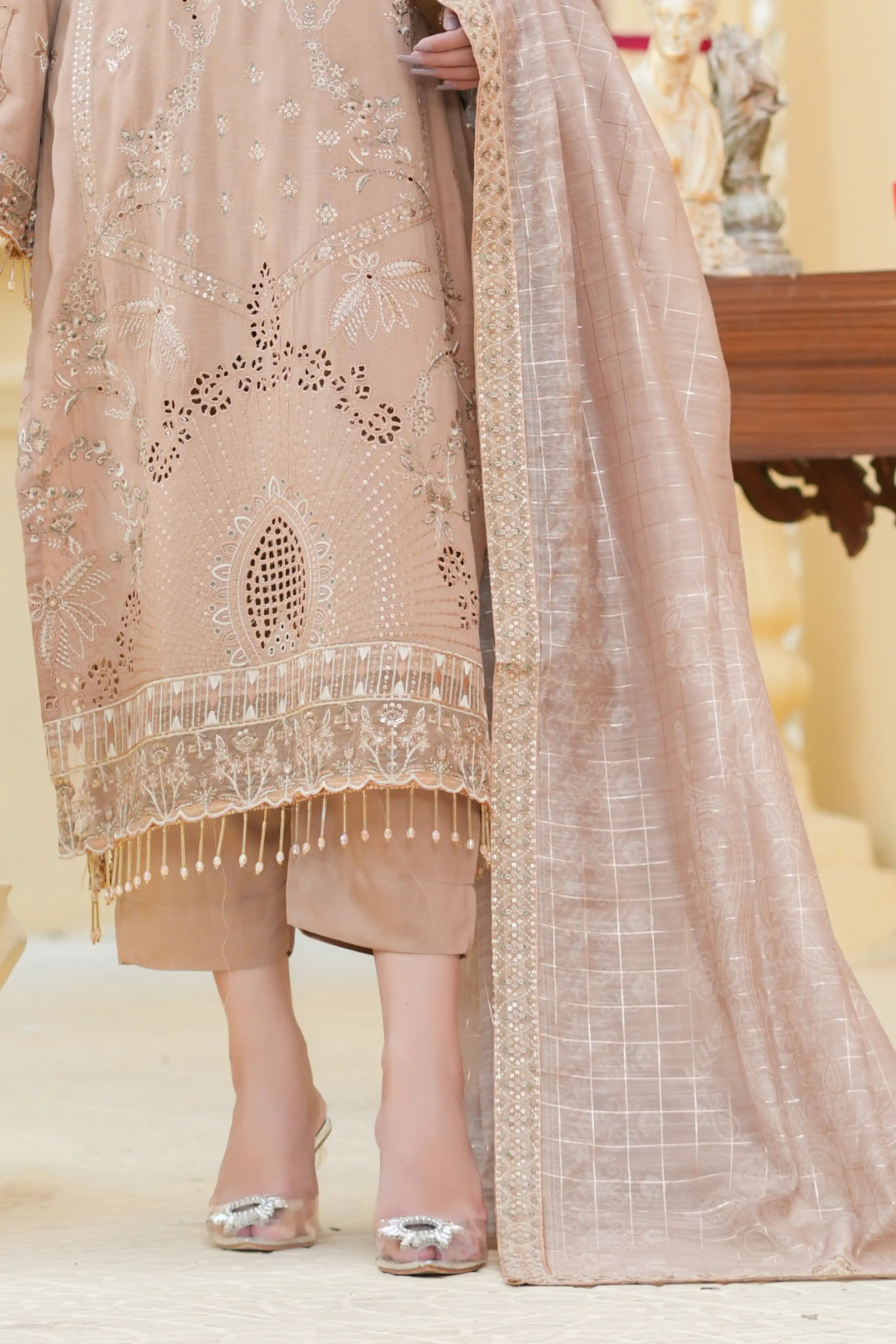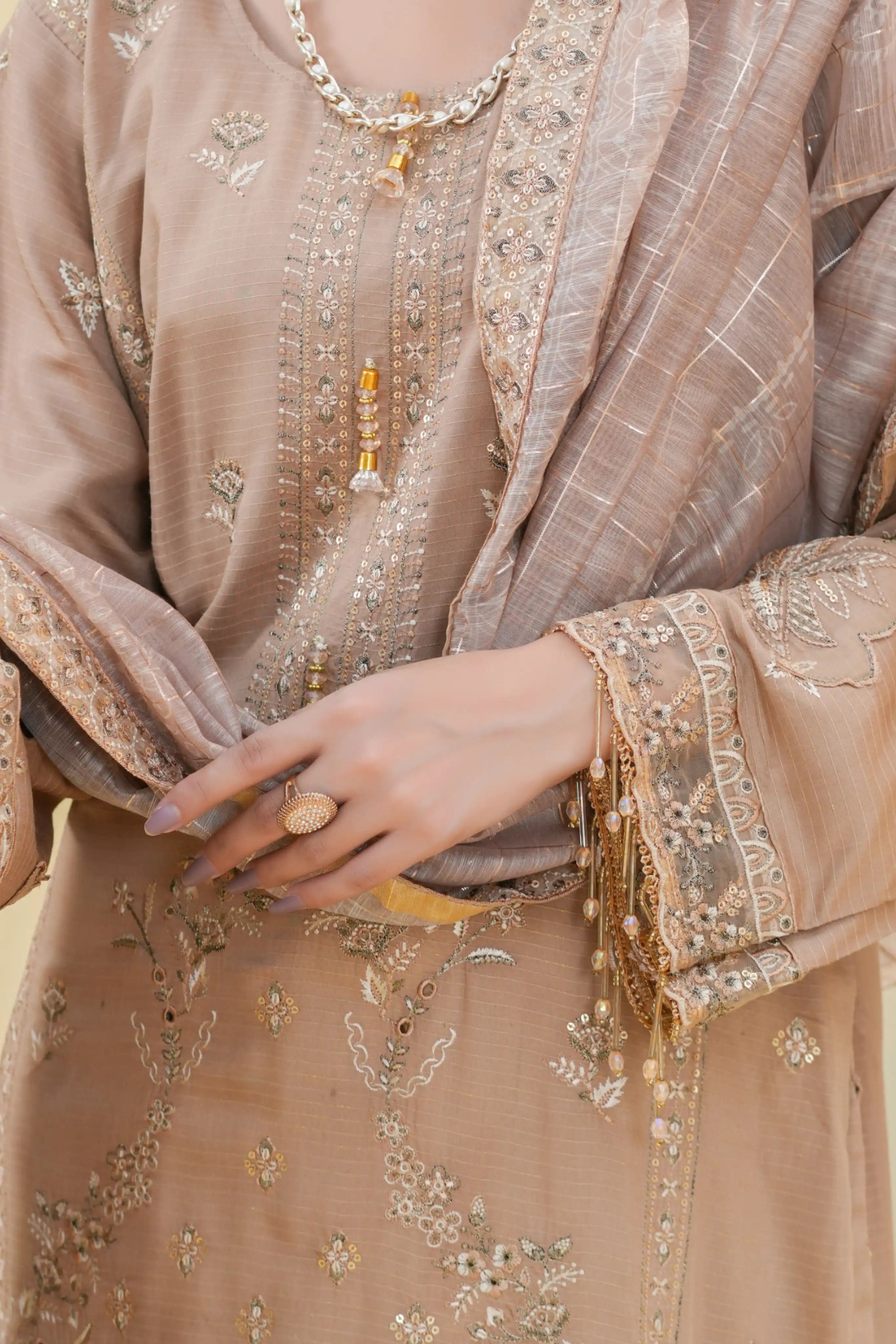 • Exclusive embroidered Chamki Bana Dora viscose shirt – 1.4 yards