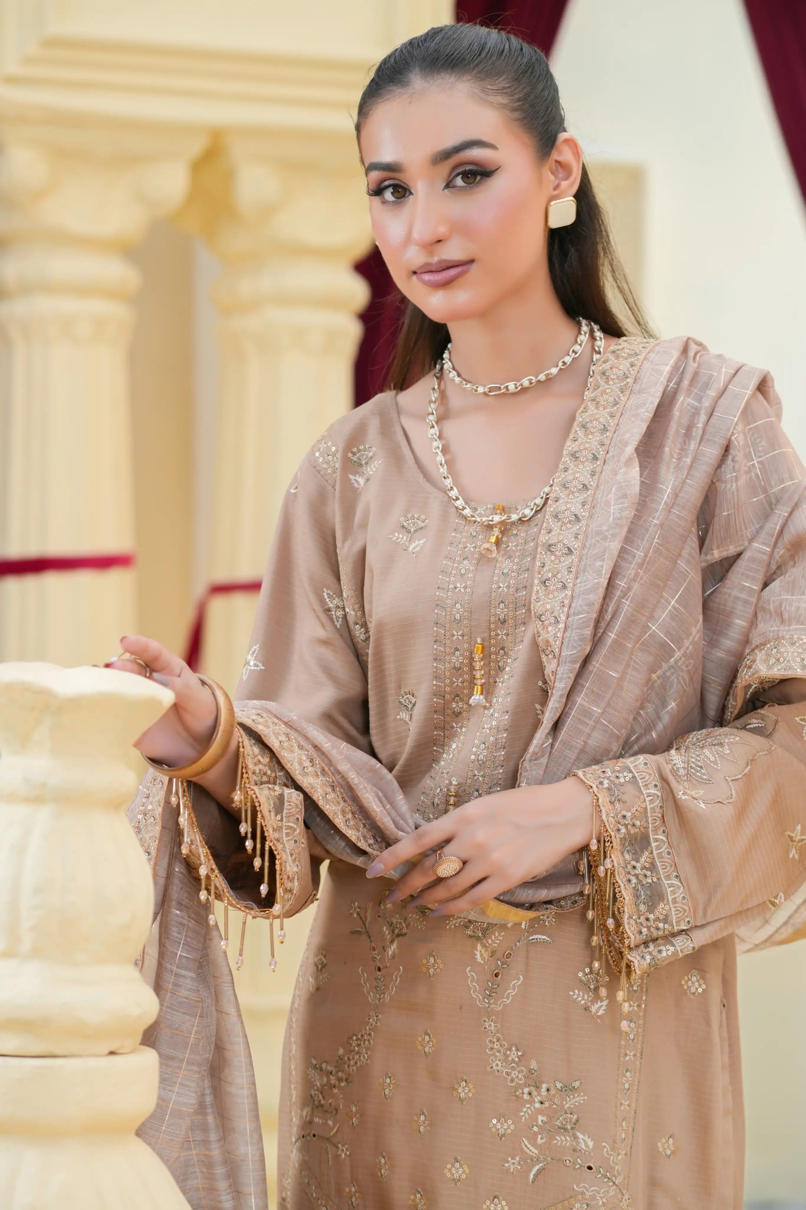 • Stylish printed & embroidered fancy dupatta (ready to wear)
