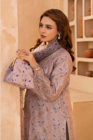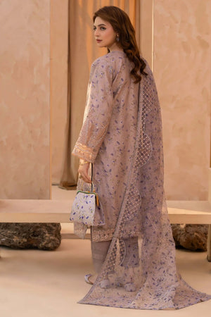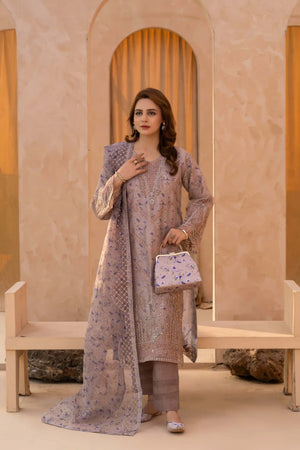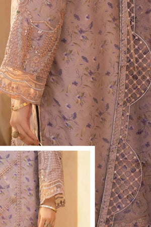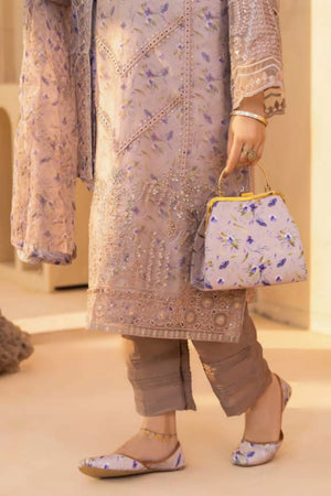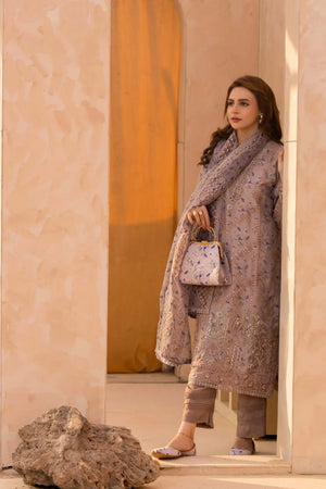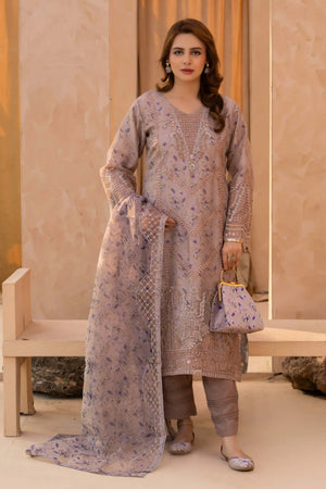 Dusty Mauve – Organza Semi Stitched Premium 3-Piece Embroidered Suit with Complimentary Clutches & Khussa