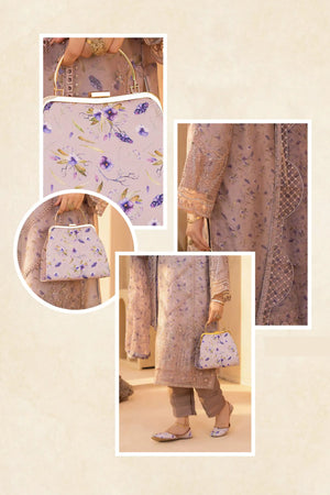 A luxurious semi-stitched 3-piece outfit crafted from premium organza fabric, designed for festive and formal occasions. Featuring exclusive embroidery on the shirt and a printed & embroidered fancy dupatta, paired with digital printed silk inner, this suit comes with complimentary clutches & khussa for a complete elegant look.