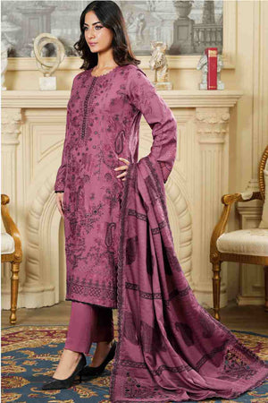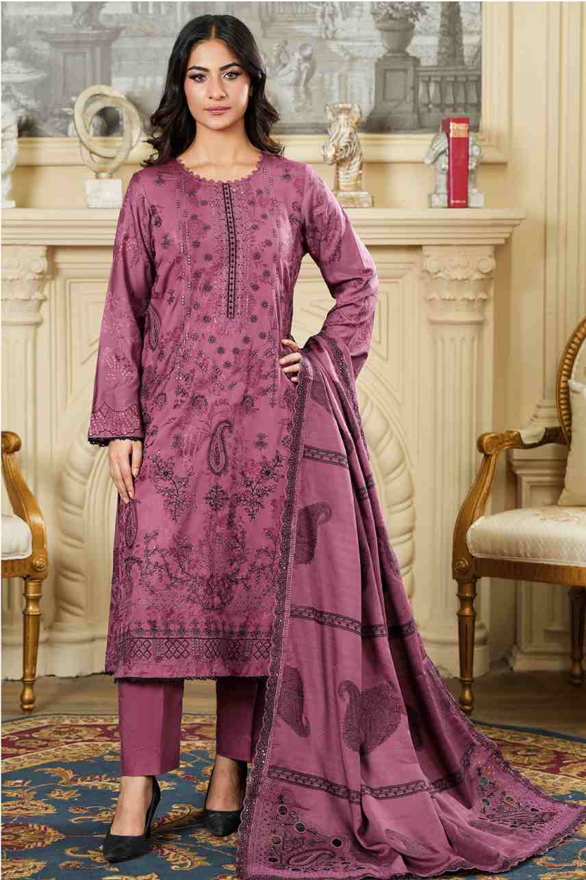 Shirt: Premium Lawn Fabric with Rich Self-Embroidery and Paisley Motifs on the front and sleeves. Features a Detailed Embroidered Neckline and a Clean Daman.